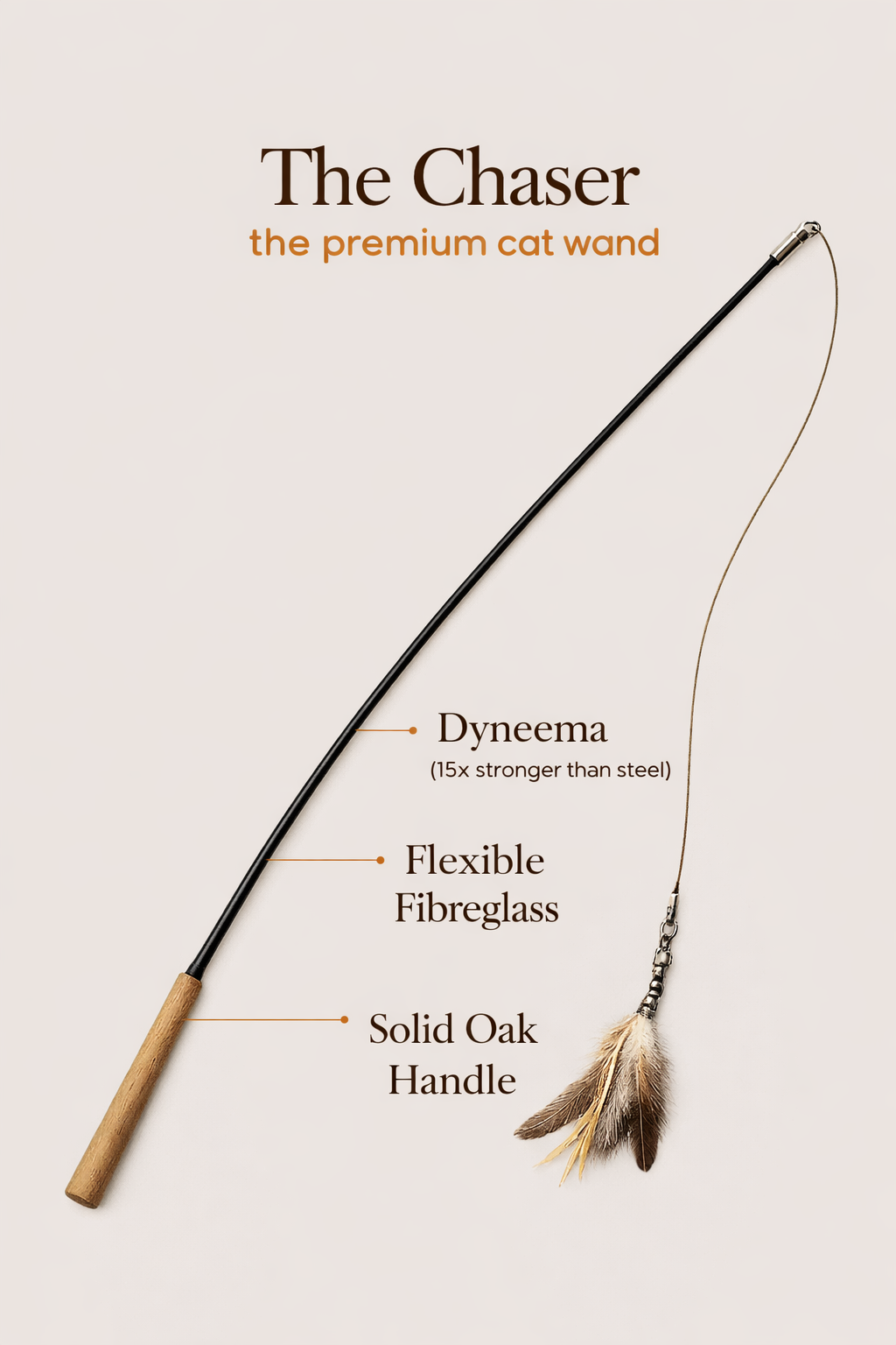 Built with premium materials, a refined minimal aesthetic, and ultra-durable construction, The Chaser is designed to replace flimsy, disposable wand toys with something stronger, sharper, and made to last.